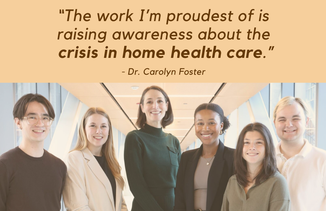 Through the Foster Health Lab and the Health@Home Initiative, she and her team are actively helping to ensure that quality health care can happen more meaningfully at home. Their work includes rethinking access to home health nursing, developing ways to better measure what caregivers actually value in care, and co-designing digital tools with families, not just for them.