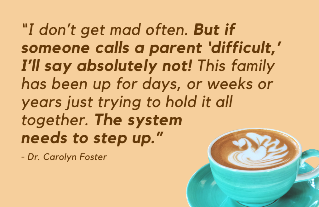 “I don’t get mad often. But if someone calls a parent ‘difficult,’ I’ll say absolutely not! This family has been up for days, or weeks or years just trying to hold it all together. The system needs to step up.”