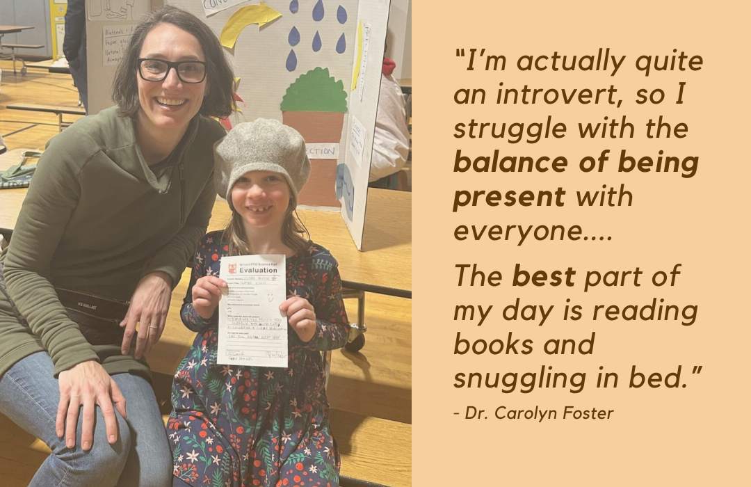 Carolyn’s drive doesn’t come at the expense of the rest of her life. At home, she and her husband are raising three young children in the Chicago suburbs. Her days may be full of research, meetings, and mentoring students, but her evenings are reserved for what matters most, her family.
