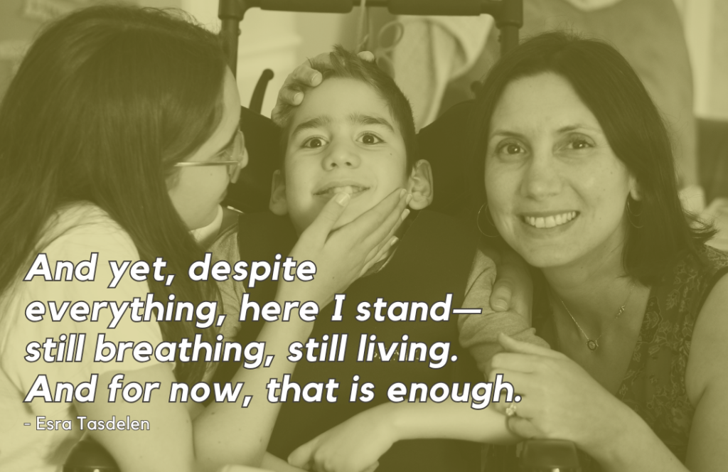Esra Tasdelen is an academic, writer, and mother of two, living in Naperville, Illinois. As the parent of a child with complex medical needs, she navigates a world of caregiving with resilience, love, and advocacy. Passionate about disability rights, Esra channels her experiences into raising awareness and fostering inclusion. She is currently working on her memoir, a heartfelt exploration of her journey as a mother, capturing the challenges, growth, and insights gained while caring for a child with complex medical needs.
